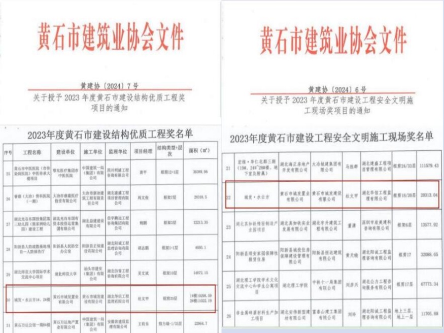 城發(fā)·水云方項(xiàng)目榮獲黃石市建設(shè)工程安全文明施工現(xiàn)場和結(jié)構(gòu)優(yōu)質(zhì)工程獎