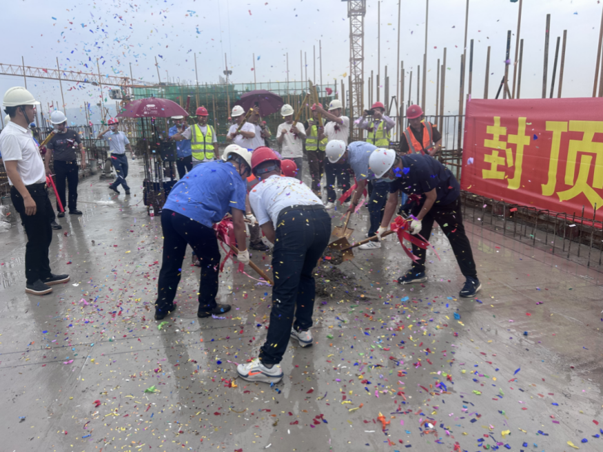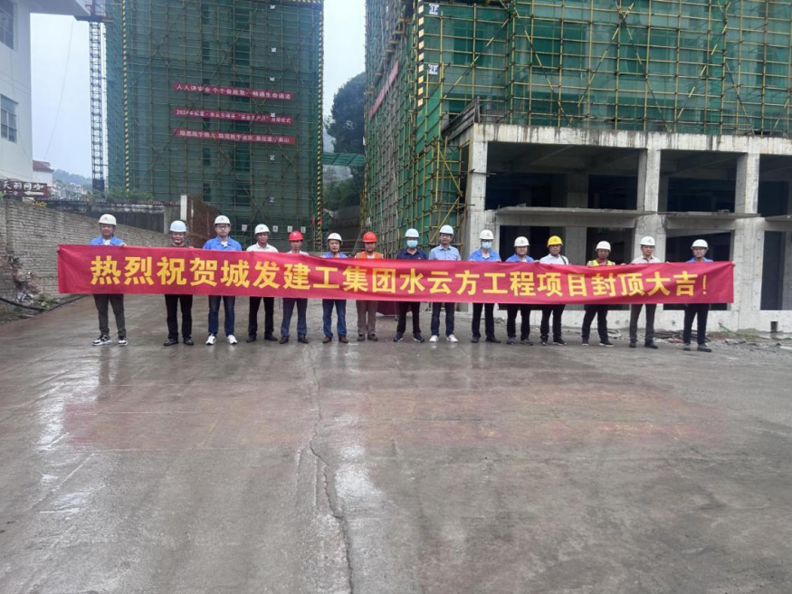 2024年7月13日,在城發(fā)·水云方項(xiàng)目現(xiàn)場舉行(北區(qū))主體結(jié)構(gòu)封頂儀式。城發(fā)建工集團(tuán)黨總支副書記、總經(jīng)理馮志華,城發(fā)建工集團(tuán)黨總支委員、副總經(jīng)理洪登峰出席活動(dòng)。項(xiàng)目施工單位、監(jiān)理單位等參建各方代表20余人參加項(xiàng)目(北區(qū))主體結(jié)構(gòu)封頂儀式。